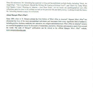 In recognition of his exceptional contributions and achievements throughout his career, David has been honored by being selected for Marquis Who's Who for 2024. Additionally, he has received the prestigious Albert Nelson Marquis Lifetime Achievement Award for the same year, underscoring his lasting impact and commitment to excellence in his field. David O. Scheiding stands as a testament to the values of perseverance, leadership, and dedication to service, inspiring others with his remarkable life story.
